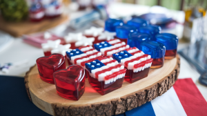 Take your red white and blue wine jello shots for 4th of July to the next level with some creative presentation ideas. I love arranging them in stripe patterns on a star-spangled tray to really drive home the patriotic theme. This looks especially stunning when serving alongside red white blue flowers as part of your table decor.